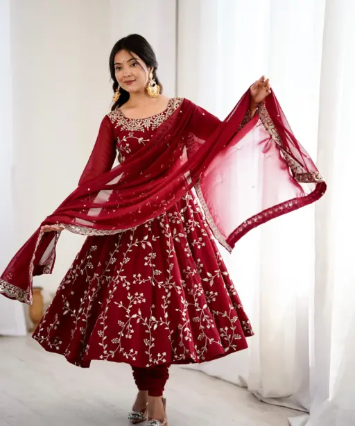 Karwa Chauth Wear Red Anarkali Suit with Churidar