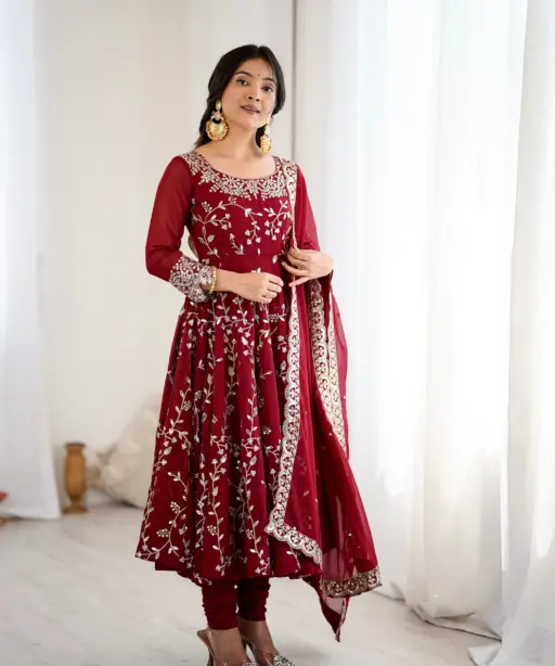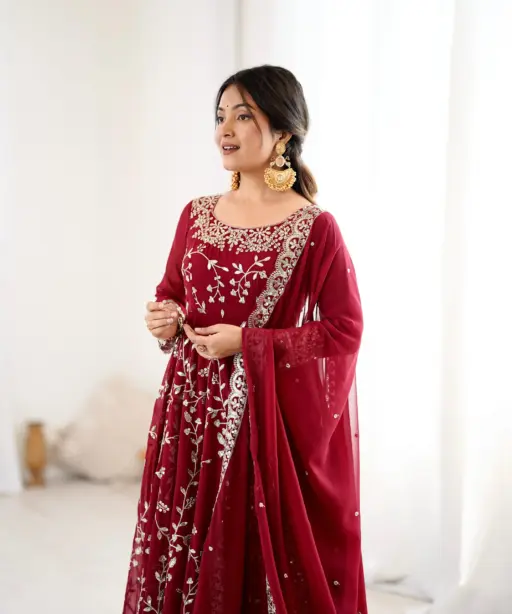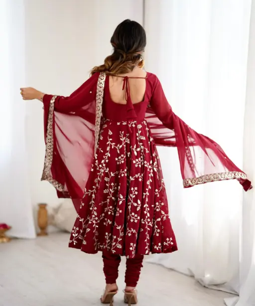 | Top | Heavy Faux Georgette Anarkali with Embroidery Sequence Work, Full Sleeves, Length 45-46 Inch, Flair 4.5 Meter, Inner Heavy Micro Cotton, Fully Stitched Ready to Wear |