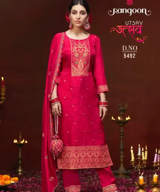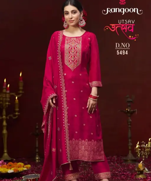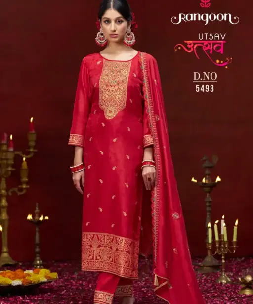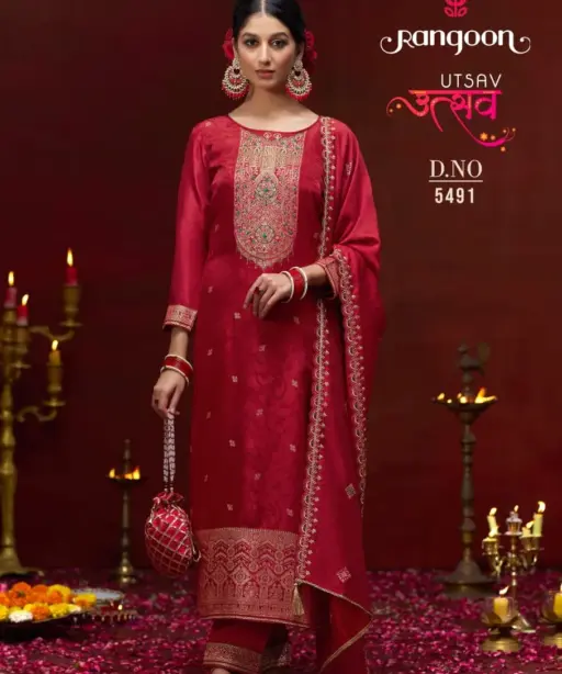 Karwachoth Red Color Handwork Ethnic Suit Rangoon Utsav