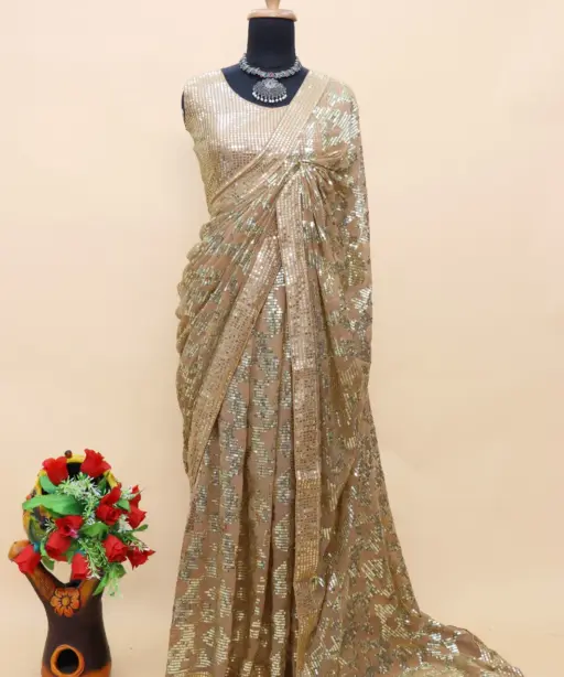 | Saree | Heavy Georgette with fancy sequence work and heavy lace border, Cut – 5.50m |
