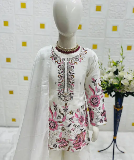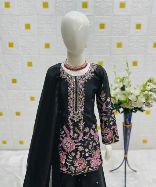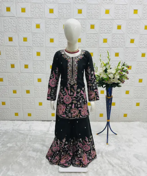 Heavy Chinon Silk with Embroidery Sequence Work (Full Stitched) | |