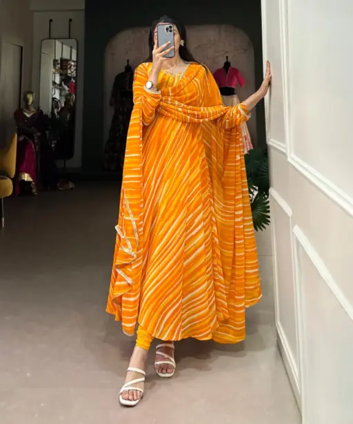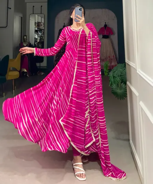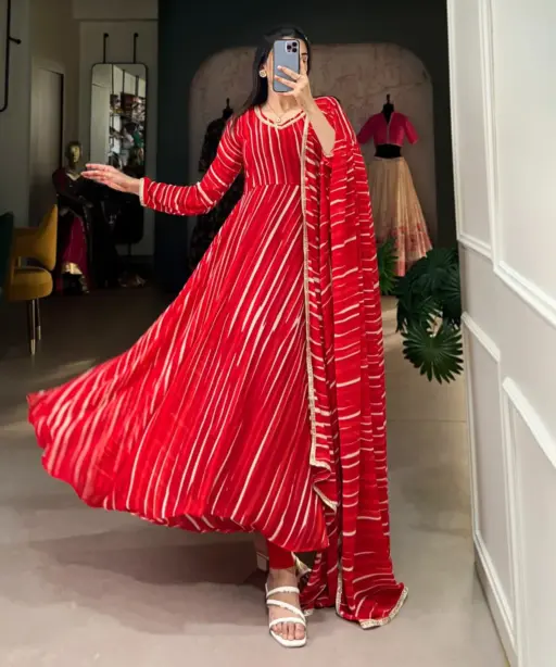 | Dupatta | Georgette with Leheriya Print and Lace Touch Up (2.20 Meter) |