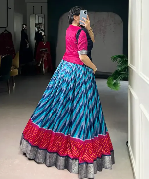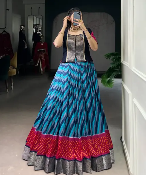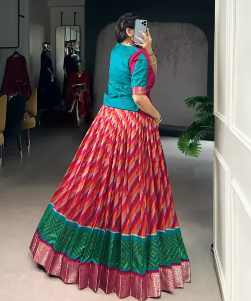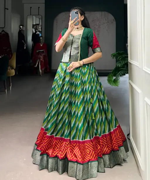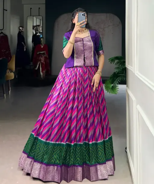 Tasar Silk with Leheriya Print and Zari Weaving Work Free Size Stitched
