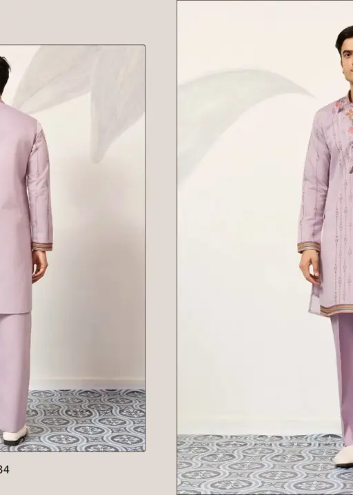 Light Purple Mens Embroidery Kurta Set