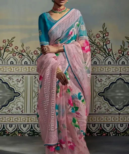 | Saree | Soft Brasso with beautiful embroidery work blouse |
