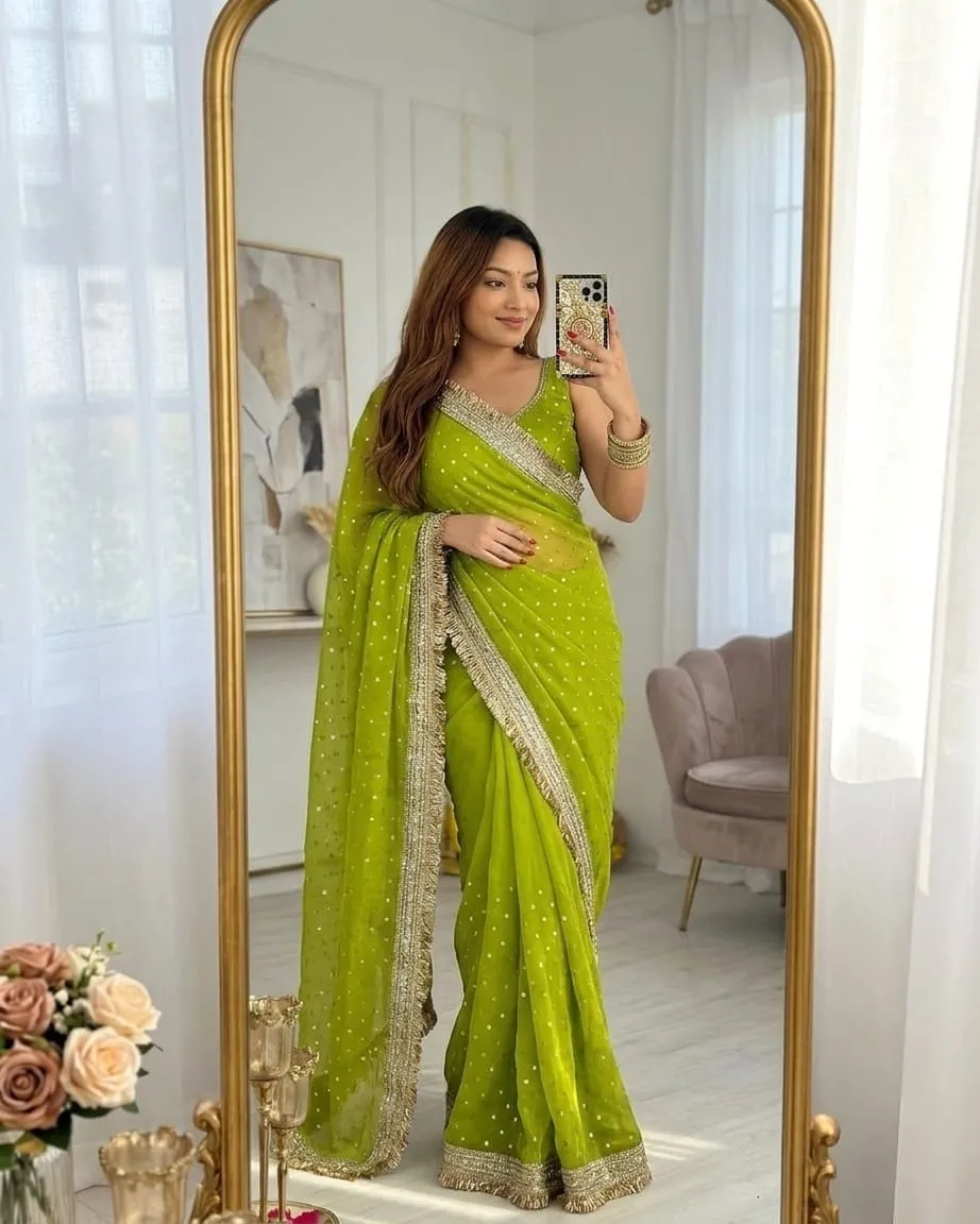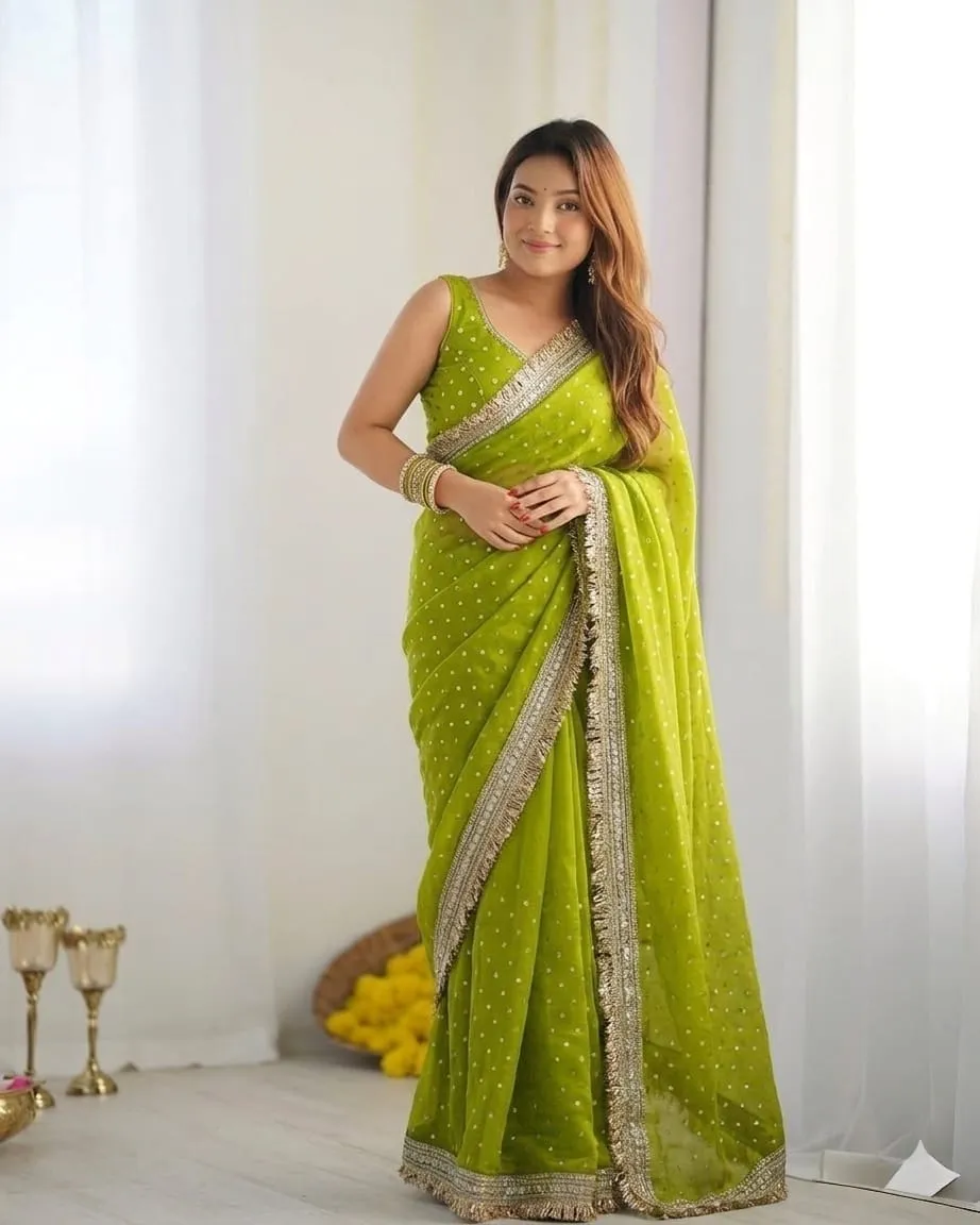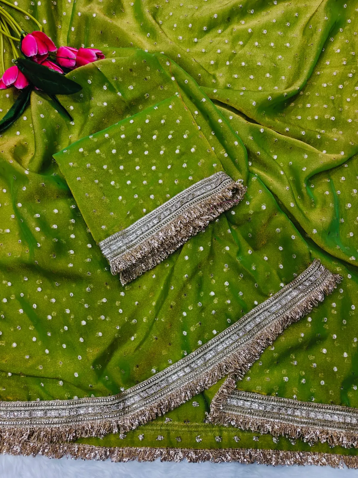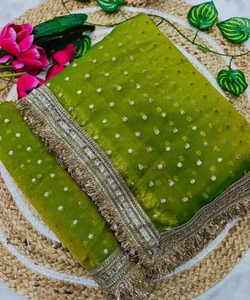 Sareeparty wear beautiful Traditional 5 color soft silk saree with 1000 butti Beautiful lace border work border design with beautiful pallu