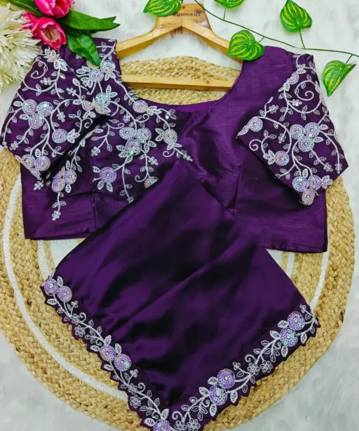 Blouseunstitched beautiful same colour beautiful sleeve lace work