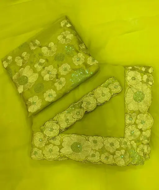 | Blouse | Heavy Mono Banglory Silk, Embroidery Work on Blouse and Belt Attached, Unstitched (0.80 meters) |