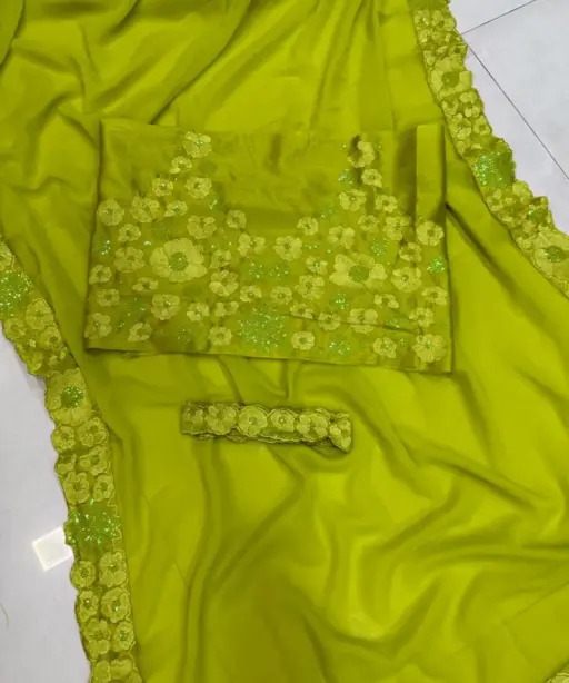 | Saree | Heavy Soft Georgette, Beautiful Embroidery Fancy Work in Lace Border with Cut Work Border |