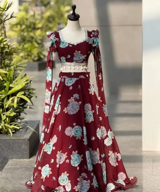 LehengaPrinted georgette lehnga with canvas patta and waist dori fully stitched