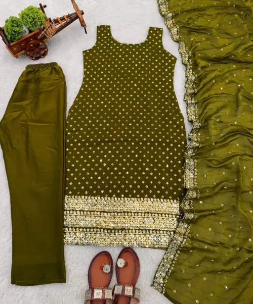 Mehendi Color Sleeveless Kurti for Mehendi night