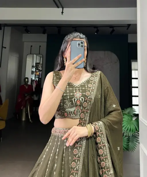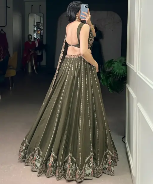 Mehendi Green Bridesmaid Embroidery Lehenga