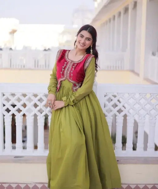 Mehendi Green Gown with Jacket Design