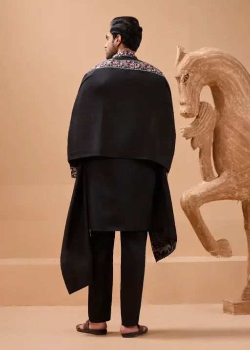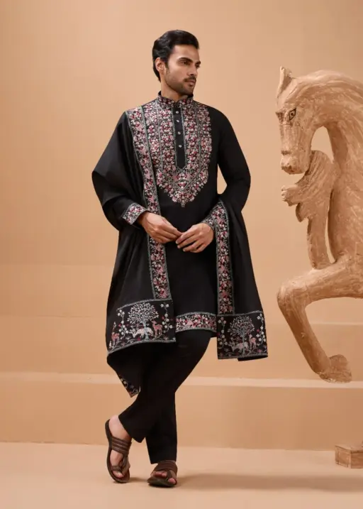 Mens Embroidery Kurta with Dupatta Black