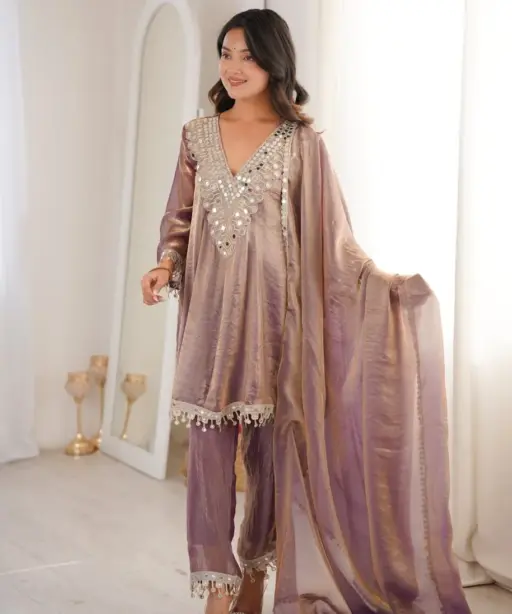 | Bottom | Fendy Fabric With Real Mirror with Coding Embroidered Lace work 40-41 INCH Length |