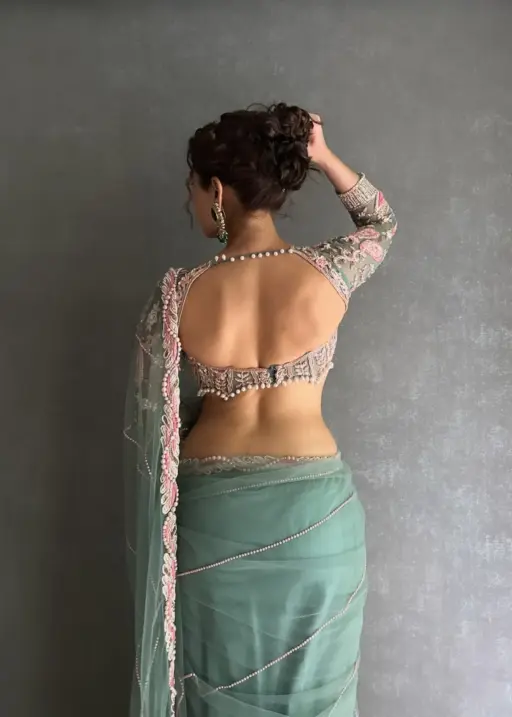 Most Viral Trending Wedding Saree With Heavy Embroidery Pearl Blouse