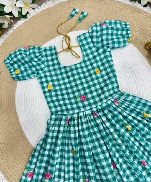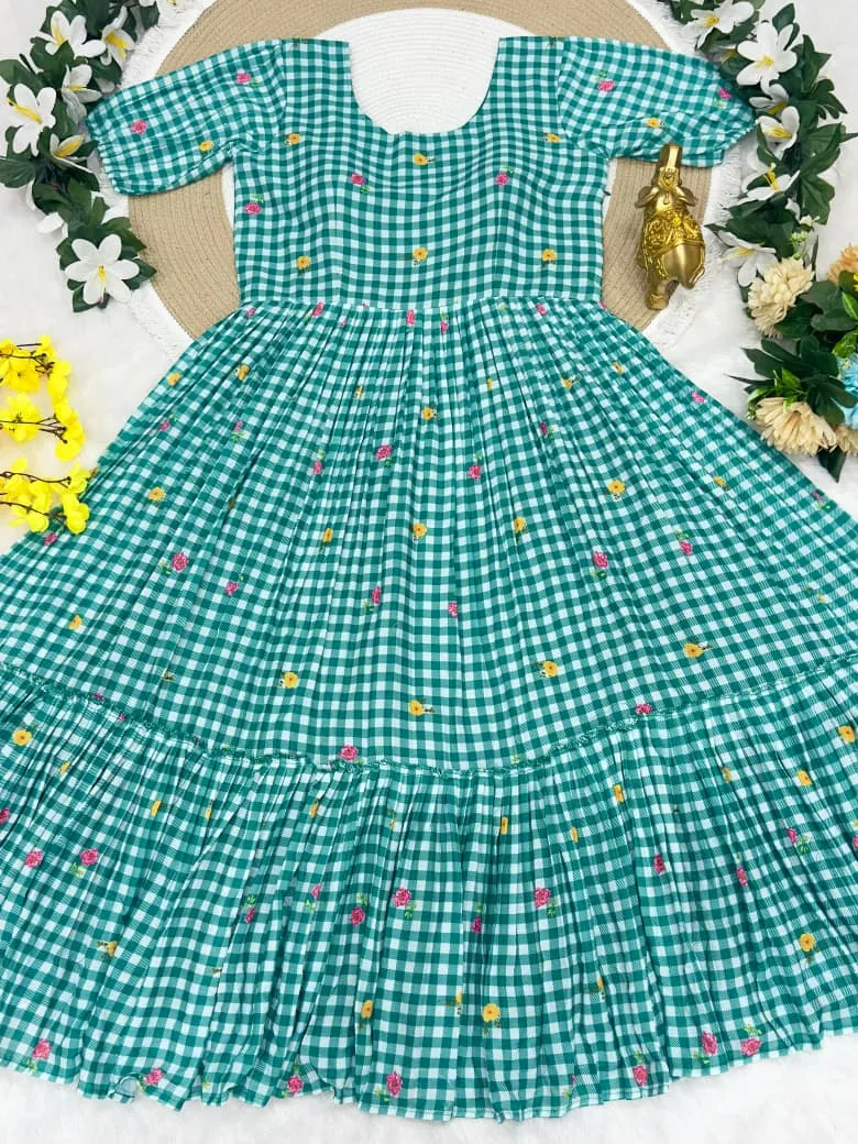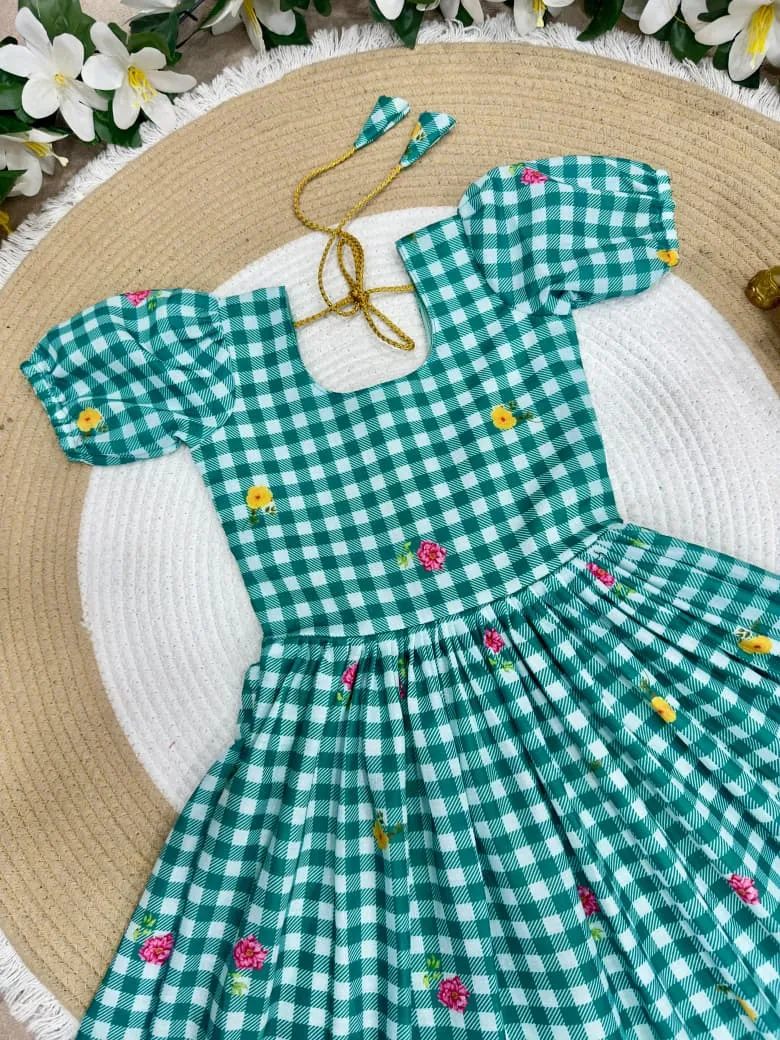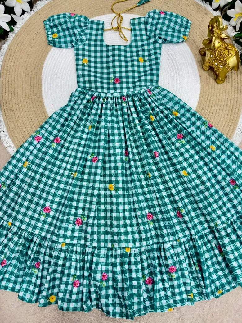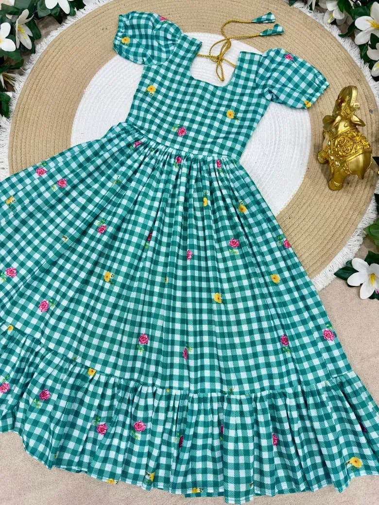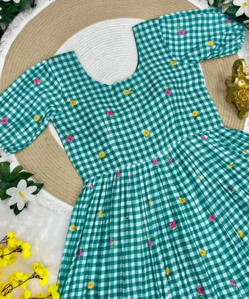 | Fabric | Beautifully Mul Chanderi Stitched Checks Print Gown & Beautiful Sleeves |