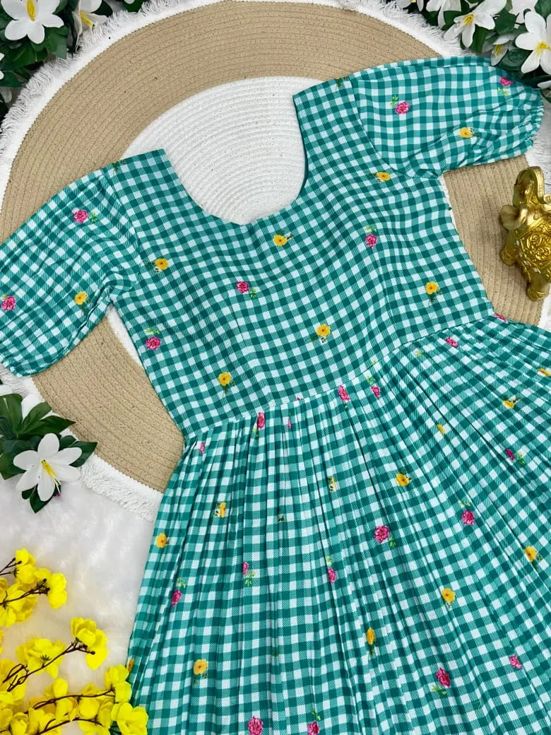 Mother Daughter Combo Midi Frock Designs Green Color