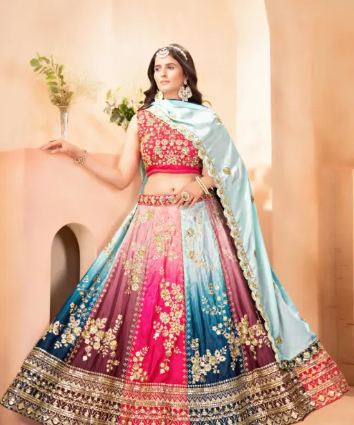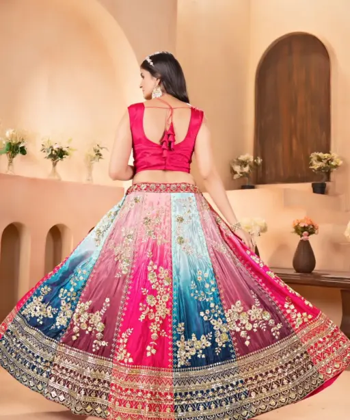 | Lehenga | Chinon Pedding with Embroidery Sequence Design Work, Waist up to 42″, Height 42″, Flair 3.5 Mtr with Cancan & Canvas, Inner Crap with Cancan & Canvas |