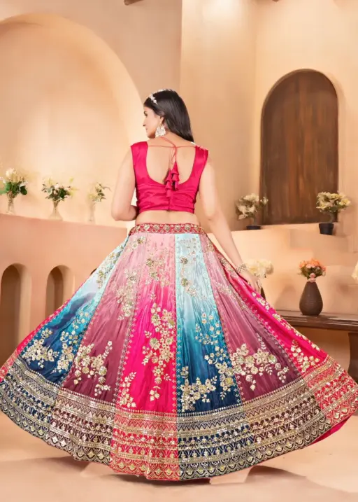 | Lehenga | Chinon Pedding with Embroidery Sequence Design Work, Waist up to 42″, Height 42″, Flair 3.5 Mtr with Cancan & Canvas, Inner Crap with Cancan & Canvas |