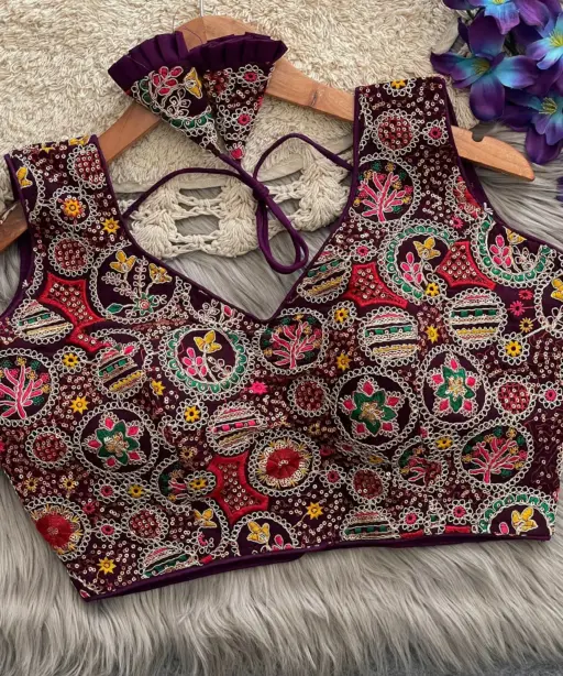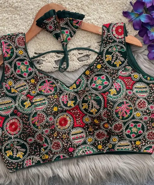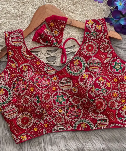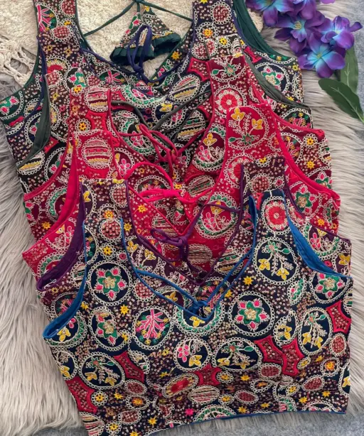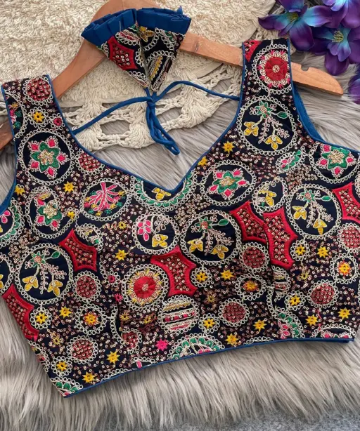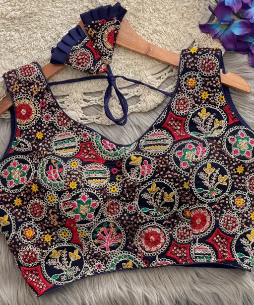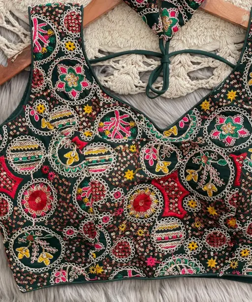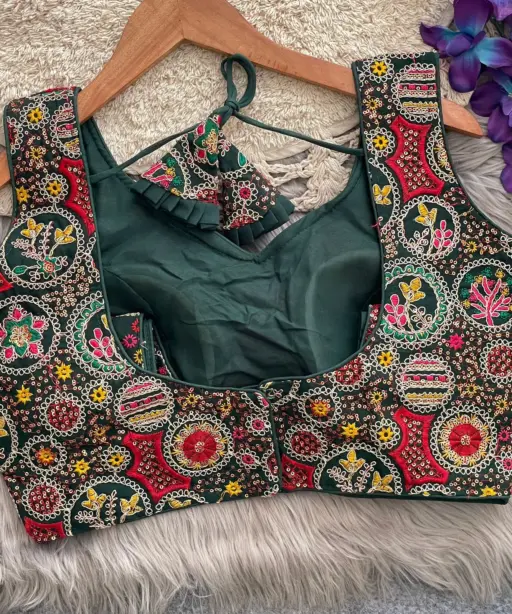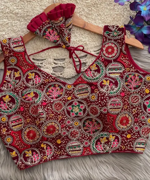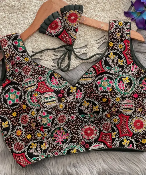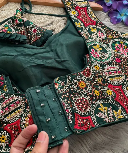 BlouseHeavy Pure Soft Bluming Fox Georgette Heavy Codding Embroidery + Thread & Sequence Work, Heavy Stitching, Heavy Padded, Handmade Hooks, Beautiful Latkans, Back Open Style