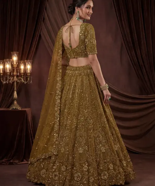 Catalog Name: Mustard Color Handwork Bridal Lehenga