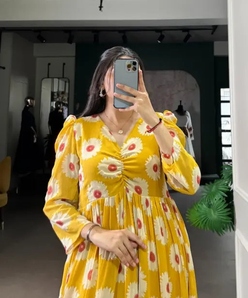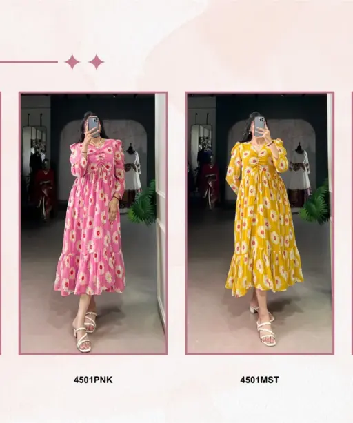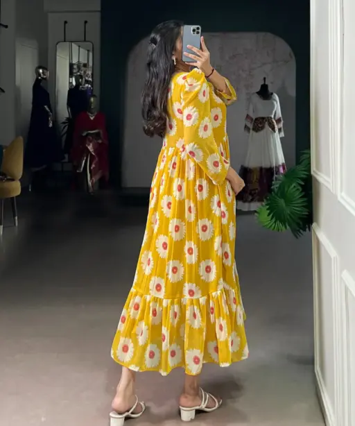 | Top | Weightless Marbal with Floral Print and Foil Work Lining Micro Crepe, Chest 38(M)(Support up to 40), 40(L)(Support up to 42), 42(XL)(Support up to 44) Waist 38, Length 45, Sleeve Length 22, Flair 4.50 Meter |