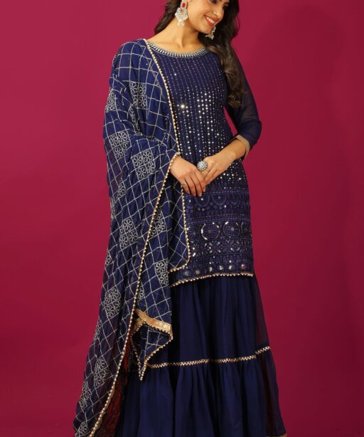 The Chikankari sharara suit is a perfect blend of tradition and style, showcasing intricate Chikankari embroidery that gives it a refined, elegant look. Ideal for weddings, parties, and festive occasions, this sharara suit for women brings out the beauty of traditional craftsmanship while offering a modern fit. The fine detailing in the embroidery adds a touch of sophistication, making it a must-have piece for your wardrobe.