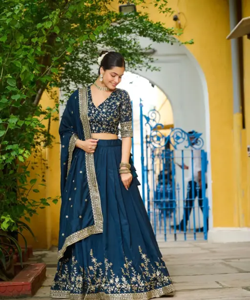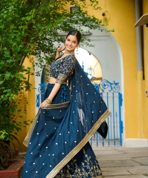 Navy blue Embroidered Lehenga Choli