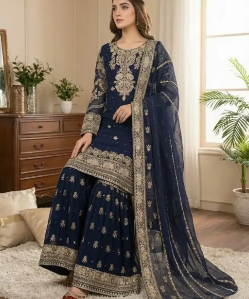 | Top | Heavy Faux Georgette With 5mm Embroidery Sequence Work with Full Sleeve 43-44 Inch Length |