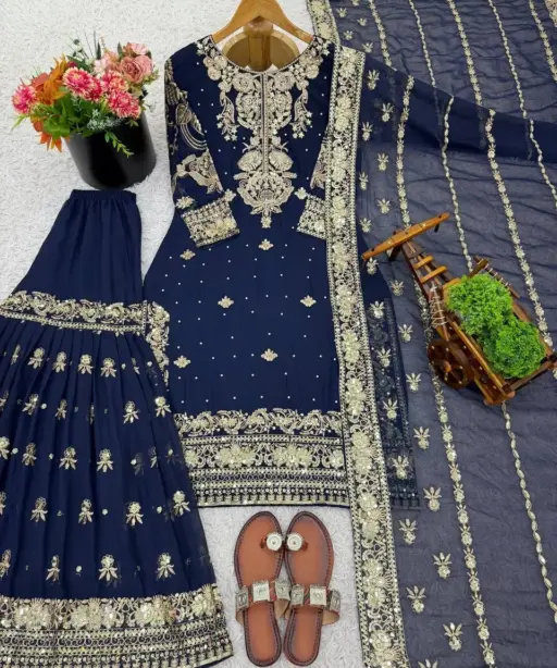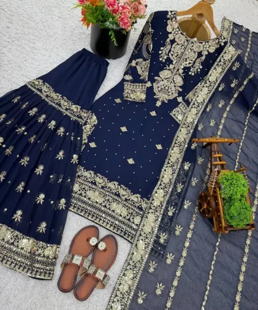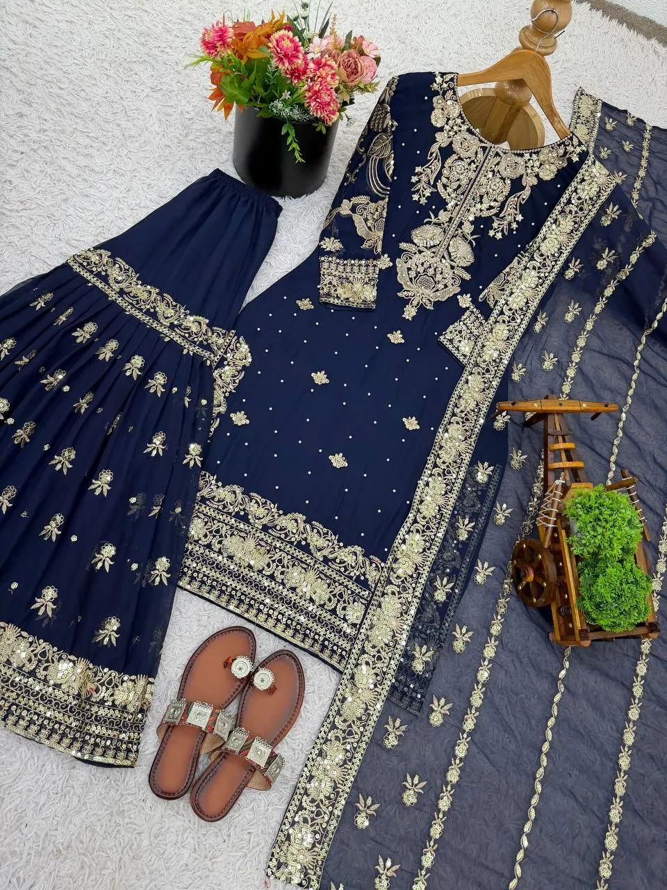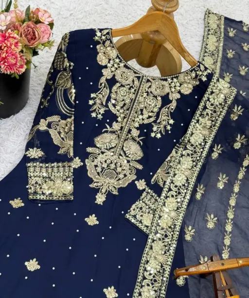 | Bottom | Heavy Faux Georgette With 5mm Embroidery Sequence with Fully Flair 40-41 Inch Length |