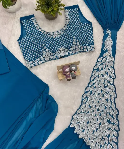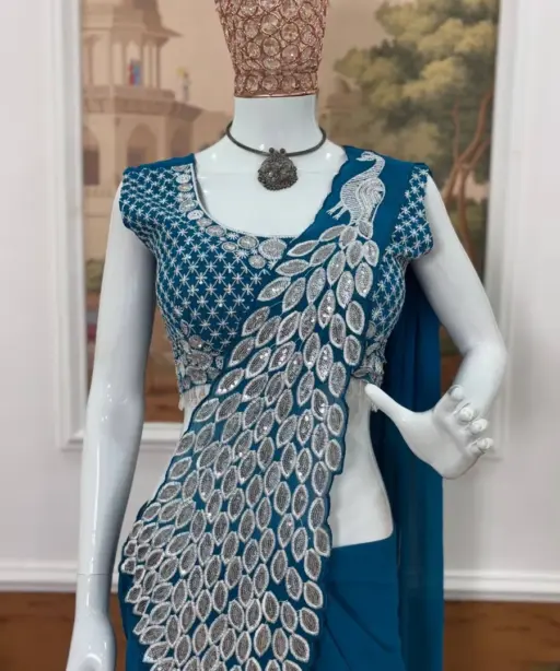 | Saree | FAUX GEORGETTE EMBROIDERY THREAD & SEQUINS WORK / READY TO WEAR / 5.5 mtr |