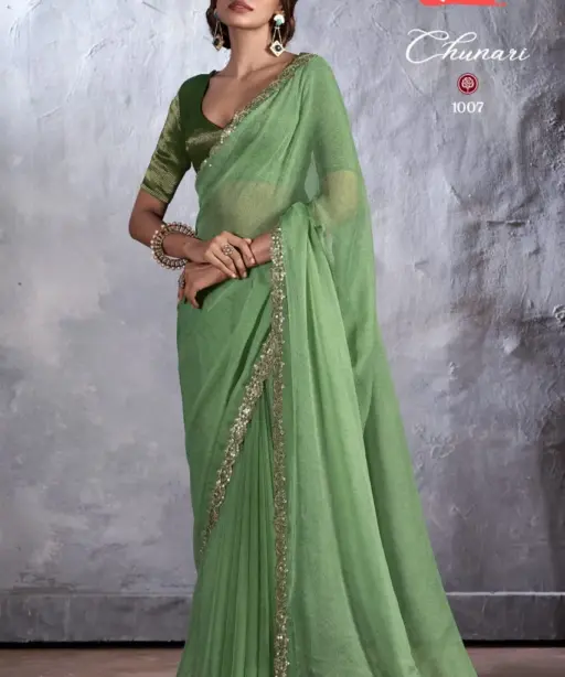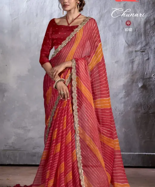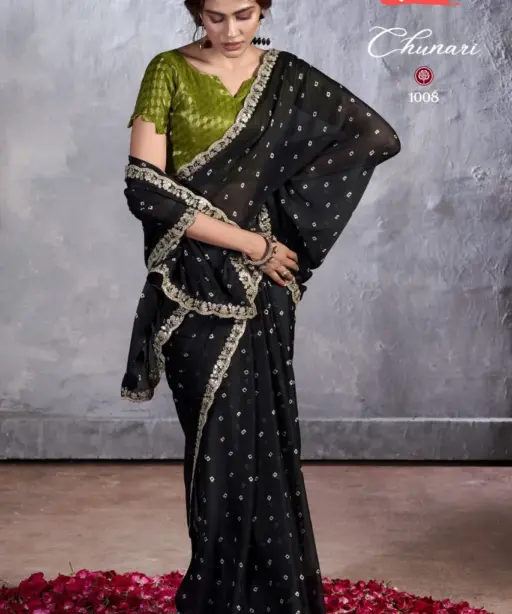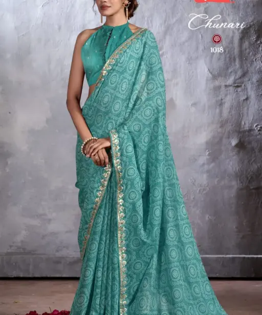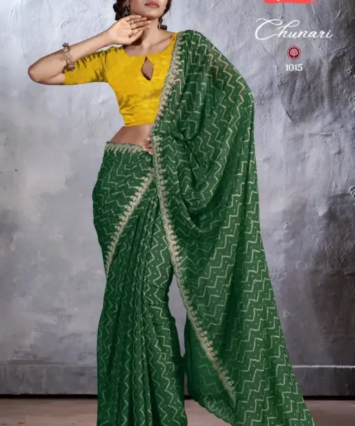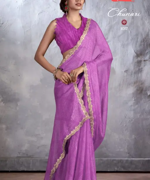 New Chiffon Saree With Cut Work Border Stavan Chunari