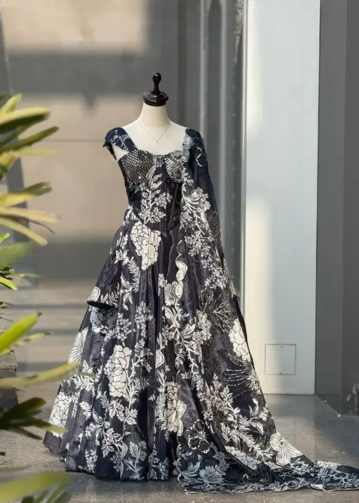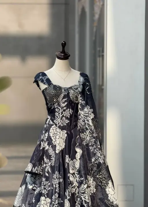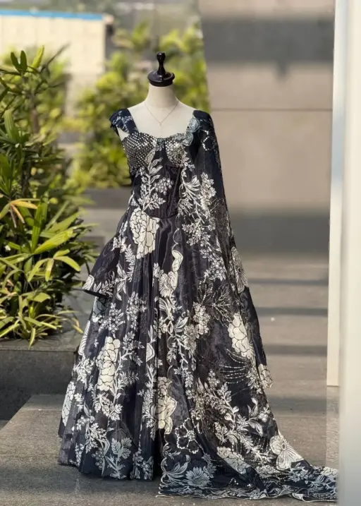 | Dupatta | digital printed jimmy organza dupatta with embroidery sequence work |