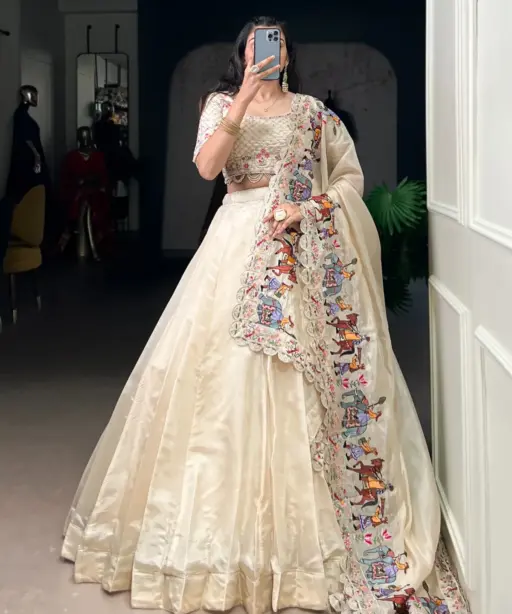 Off White Bridesmaid Lehenga with Heavy Dupatta