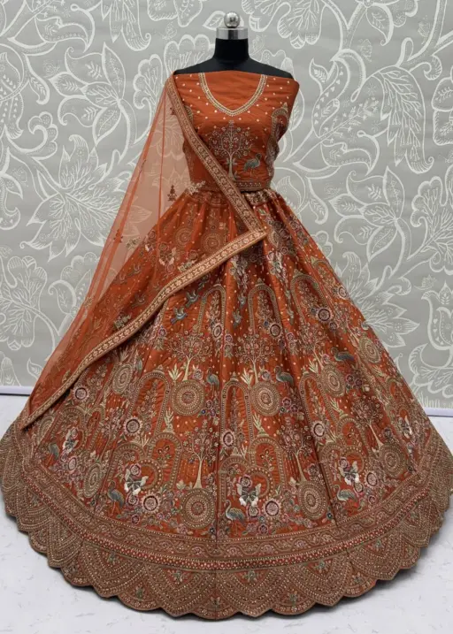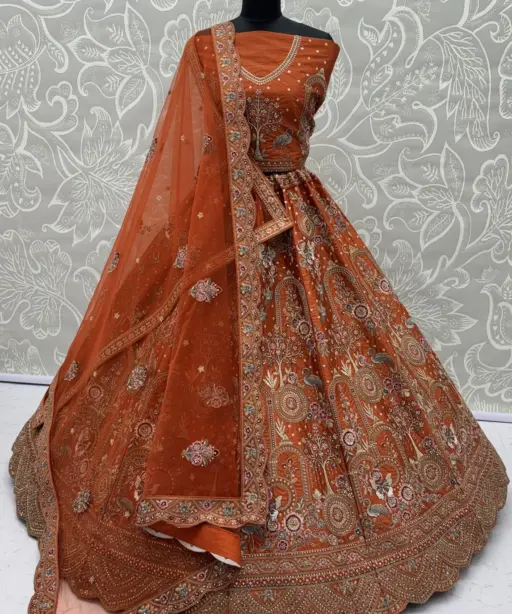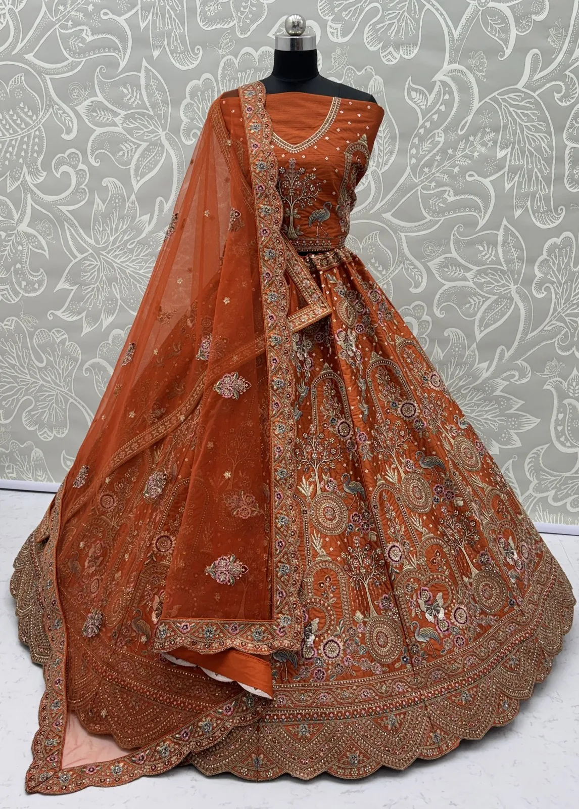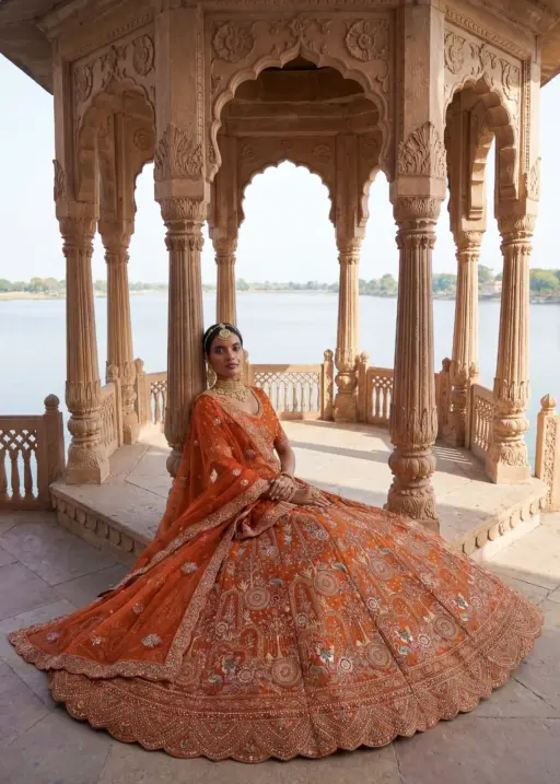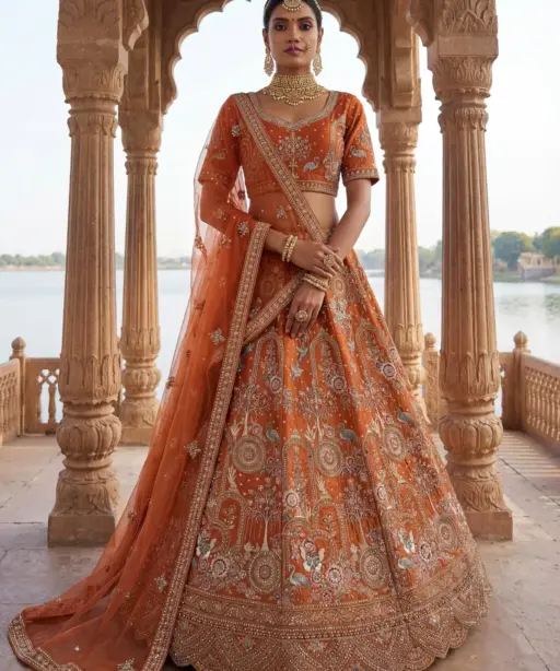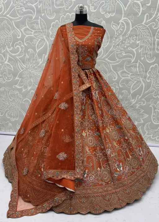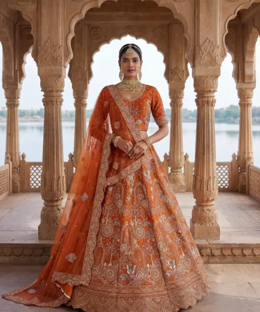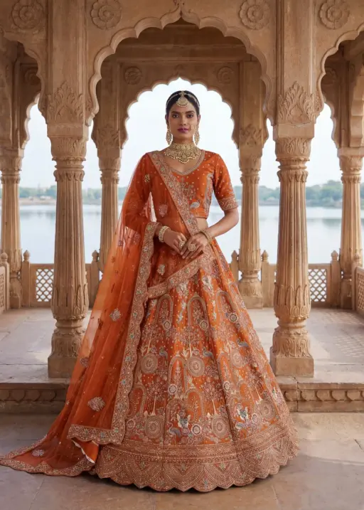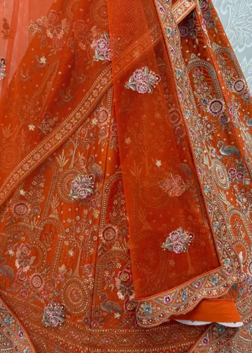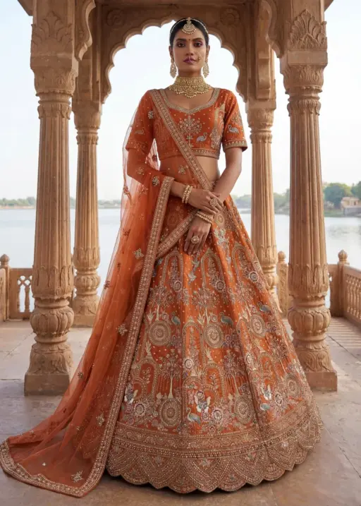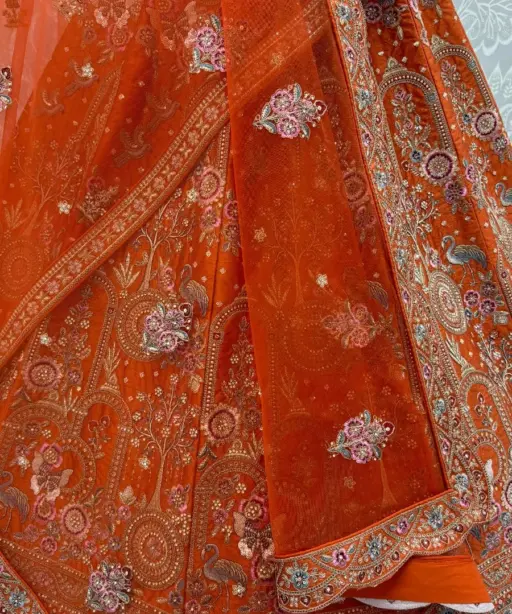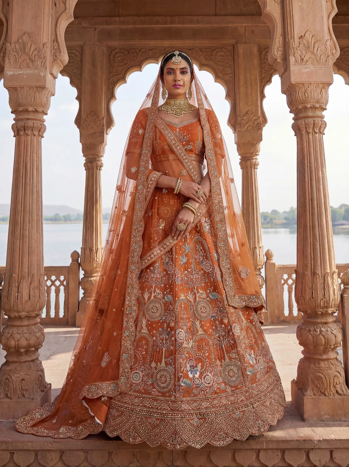 Orange Color Double Dupatta Bridal Lehenga Choli