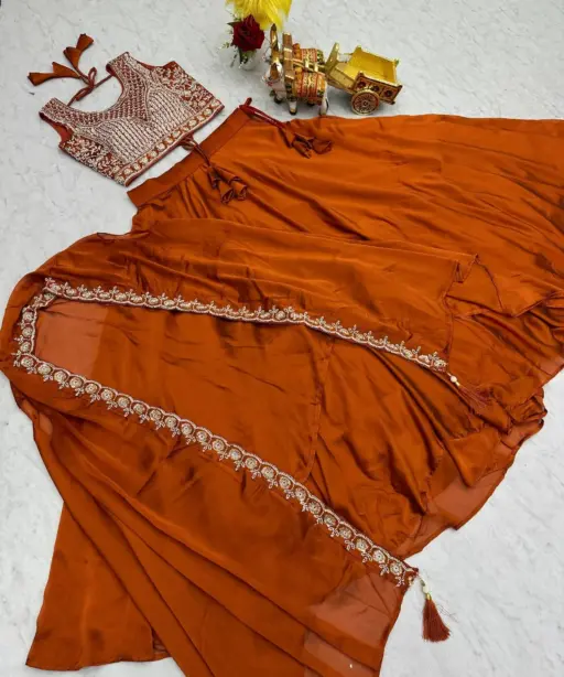 Orange Wedding Shrug Style Readymade Lehenga