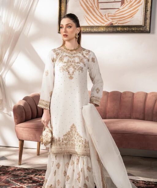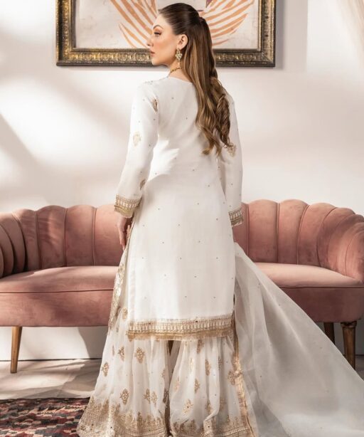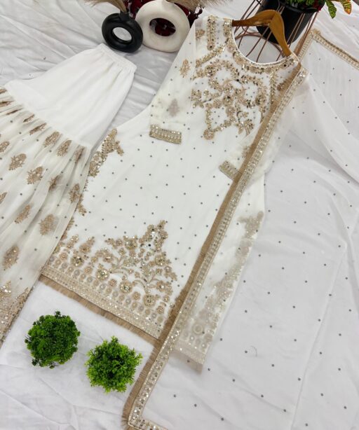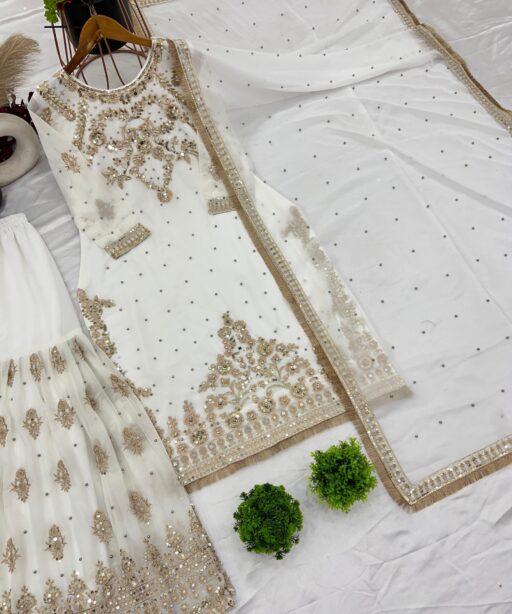 Bottom: Sharara Plazzo Heavy Faux Georgette With 5mm Embroidery Sequence With Fully Flair With Micro Cotton Inner Length 40-41 inch