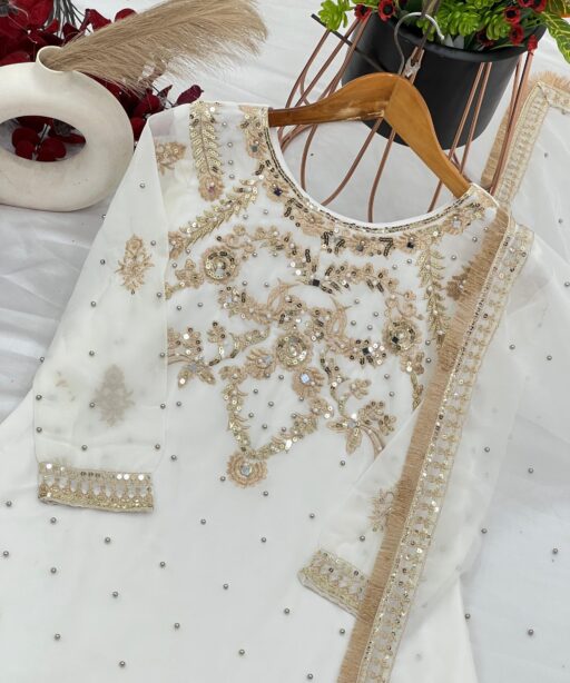 Top: Faux Georgette With Heavy Embroidery Sequence Work And Full Sleeve With Revet Moti With Micro Cotton Inner Length 39-40 inch