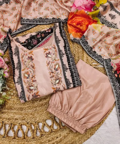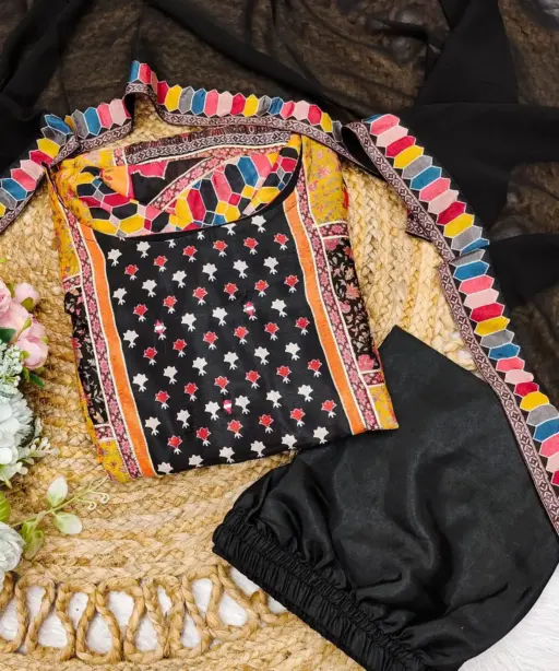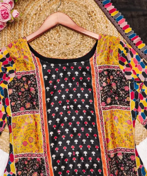 | Top | Chinon with Digital Print, Hand Embroidery & Sequin/Bead Work, Length 45″ |