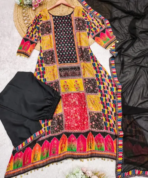 | Dupatta | Chinon with Matching Embroidery & Digital Print |