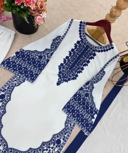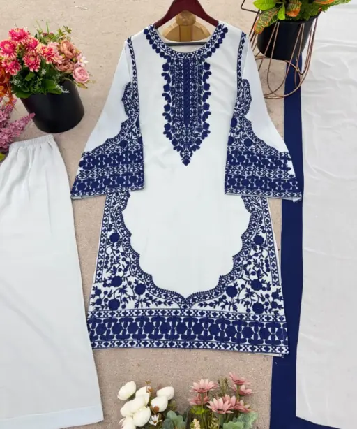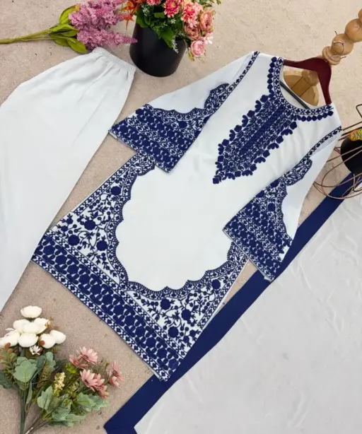 | Fox Georgette with Embroidery Work (Inner | Heavy Micro Cotton, Full Sleeves, Length: 39-40 inches) |