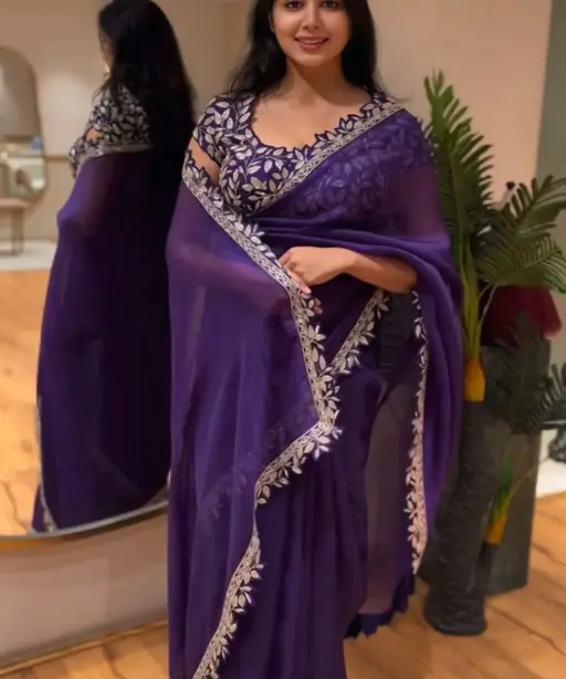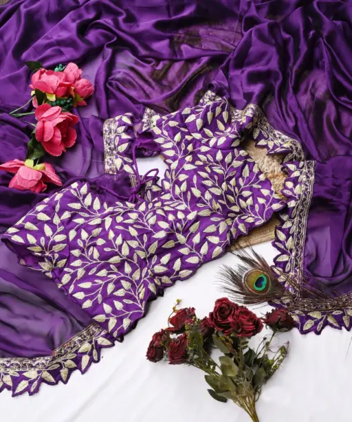| Blouse | Fully Stitched Purple Colour Blouse With Full Body & Sleeve Embroidery Work And Side Zip (Size: 38-46) |