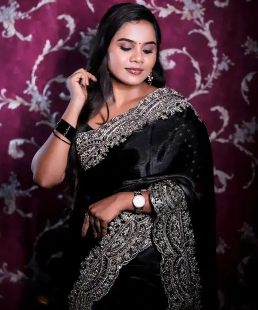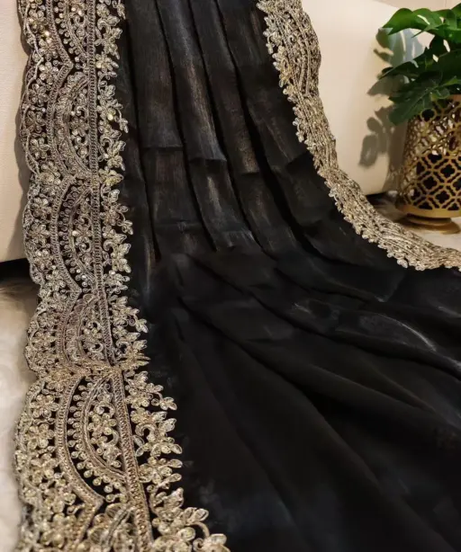 | Saree Fabric | Soft Satin Organza with Heavy Coding Sequence Panel Work All Over |