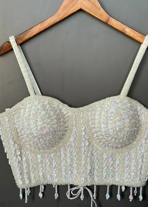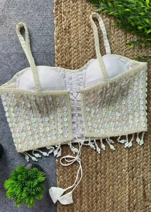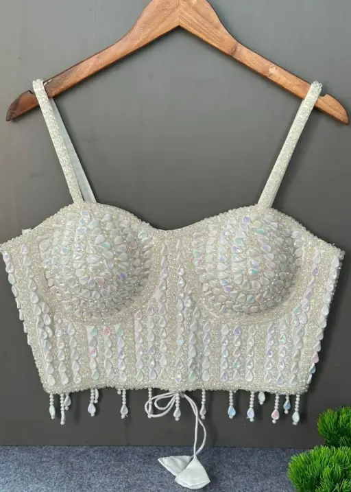 | Blouse | Beautiful Traditional Blouse Heavy Stitching Heavy Pearl Blouse Padded with Beautiful Work BACK open Style Size 38 Ready ulter upto 4244 Inch. |