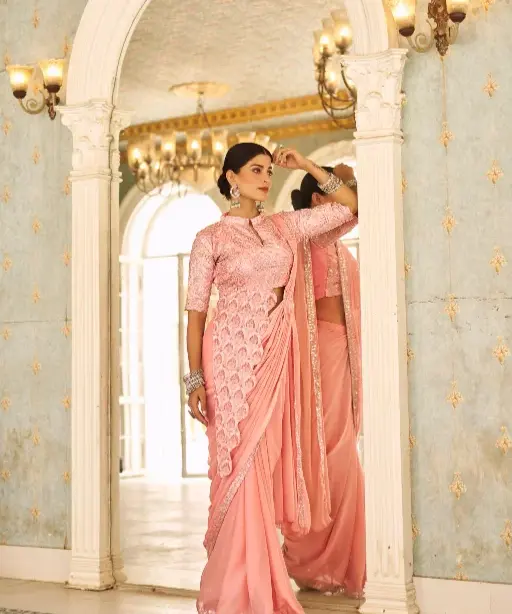 Elevate your festive and celebration look with our stunning Party Wear Ready-to-Wear Saree with Stitched Blouse. Specially designed for the modern woman who wants to look effortlessly elegant without the hassle of traditional draping, this pre-stitched saree is the ultimate combination of style, comfort, and convenience.