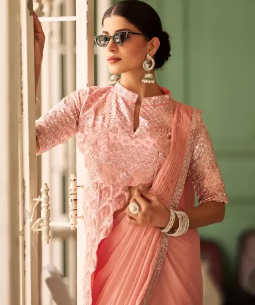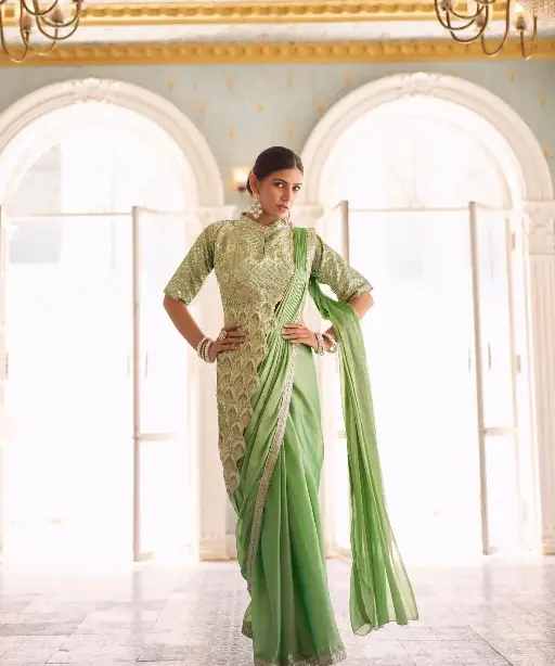 Party Wear Ready-to-Wear Saree with Stitched Blouse – Perfect Blend of Tradition and Modern Elegance