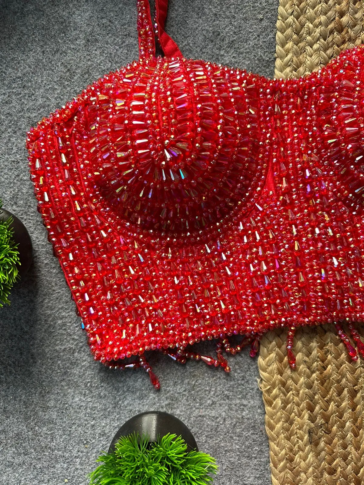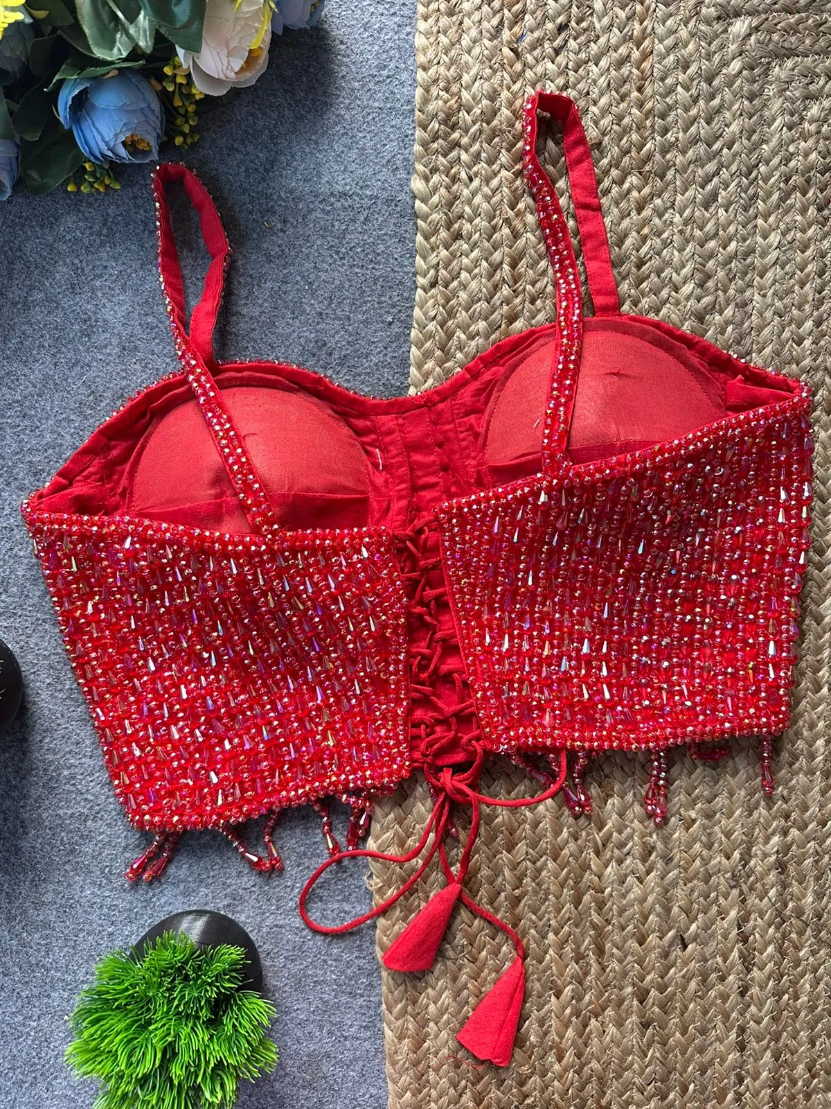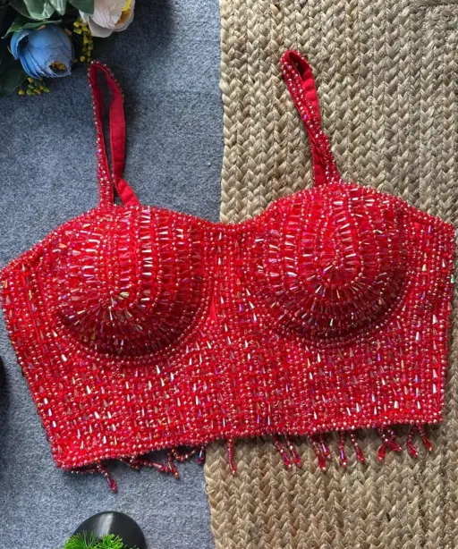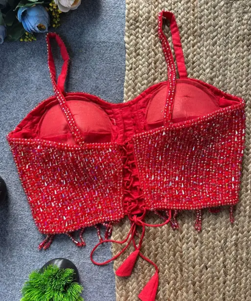 Party Wear Red Pearl Blouse
