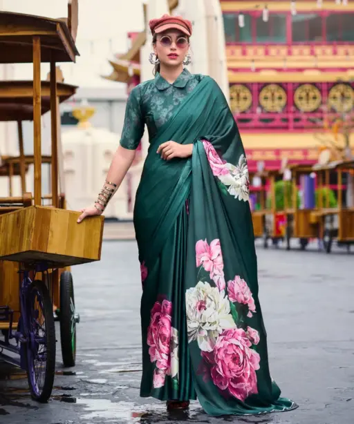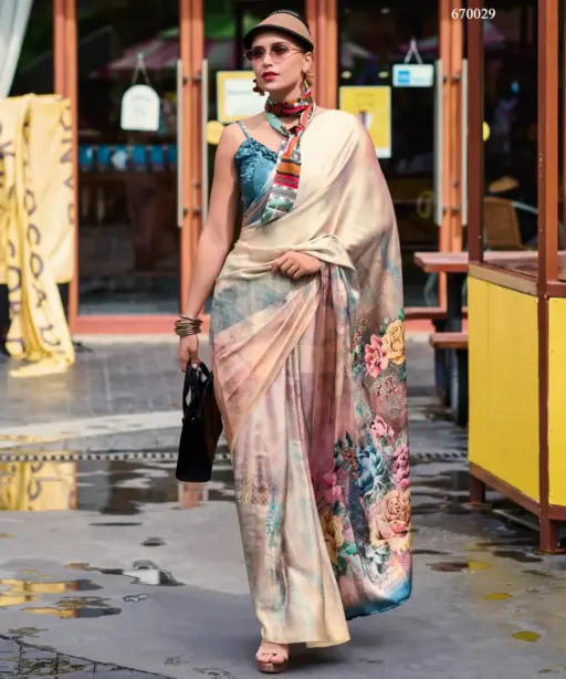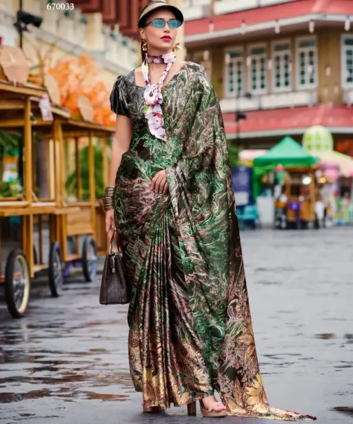 Catalog Name: Partywear Digital Printed Satin Crepe Saree