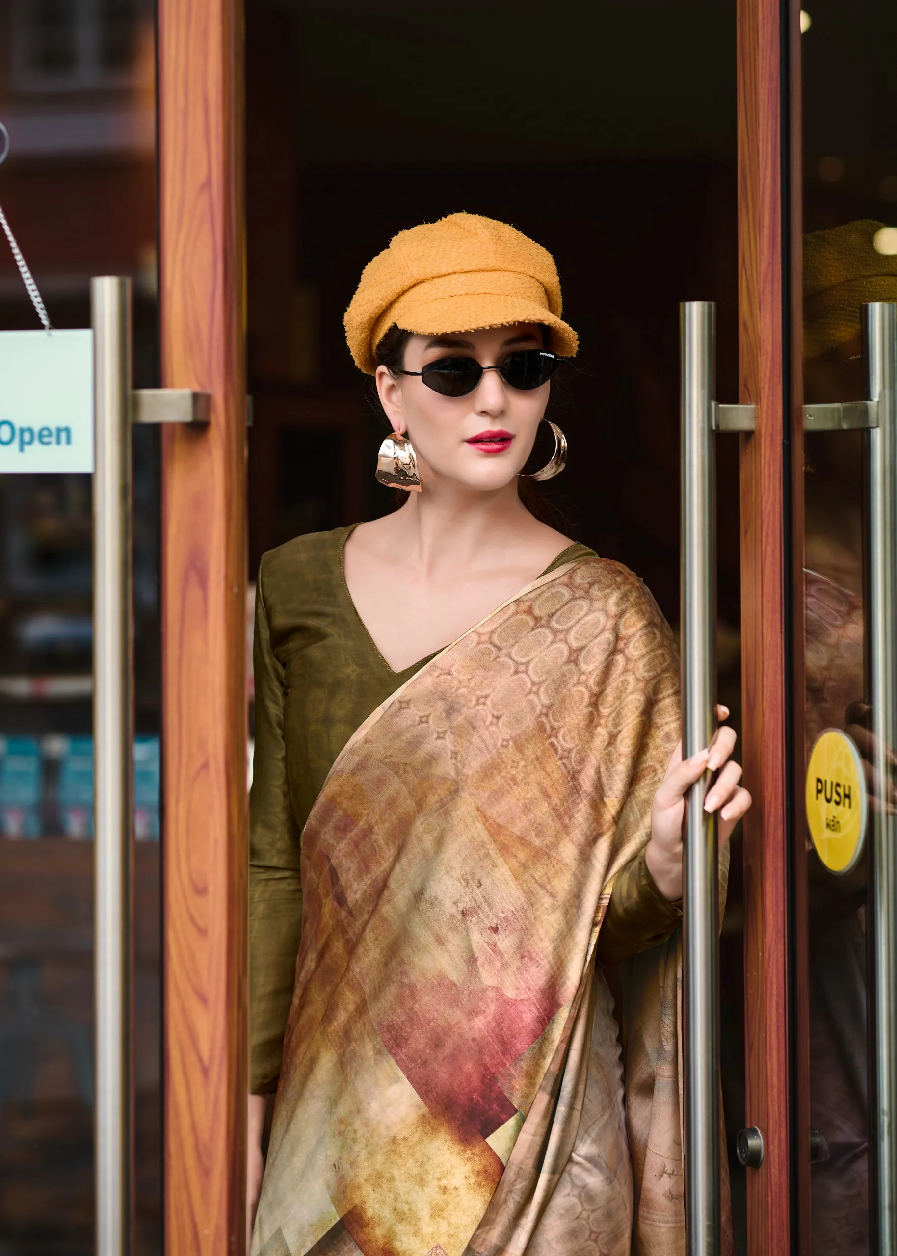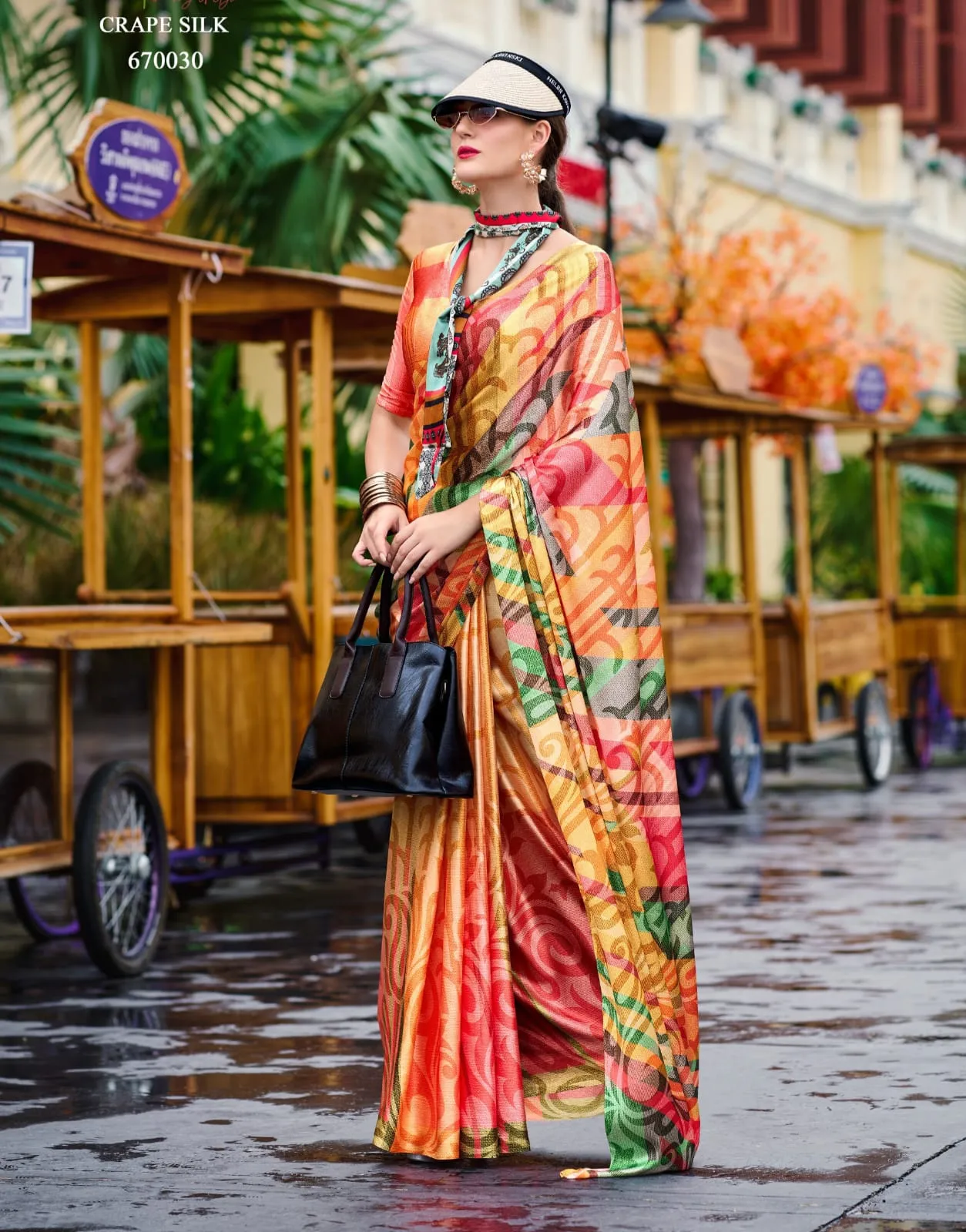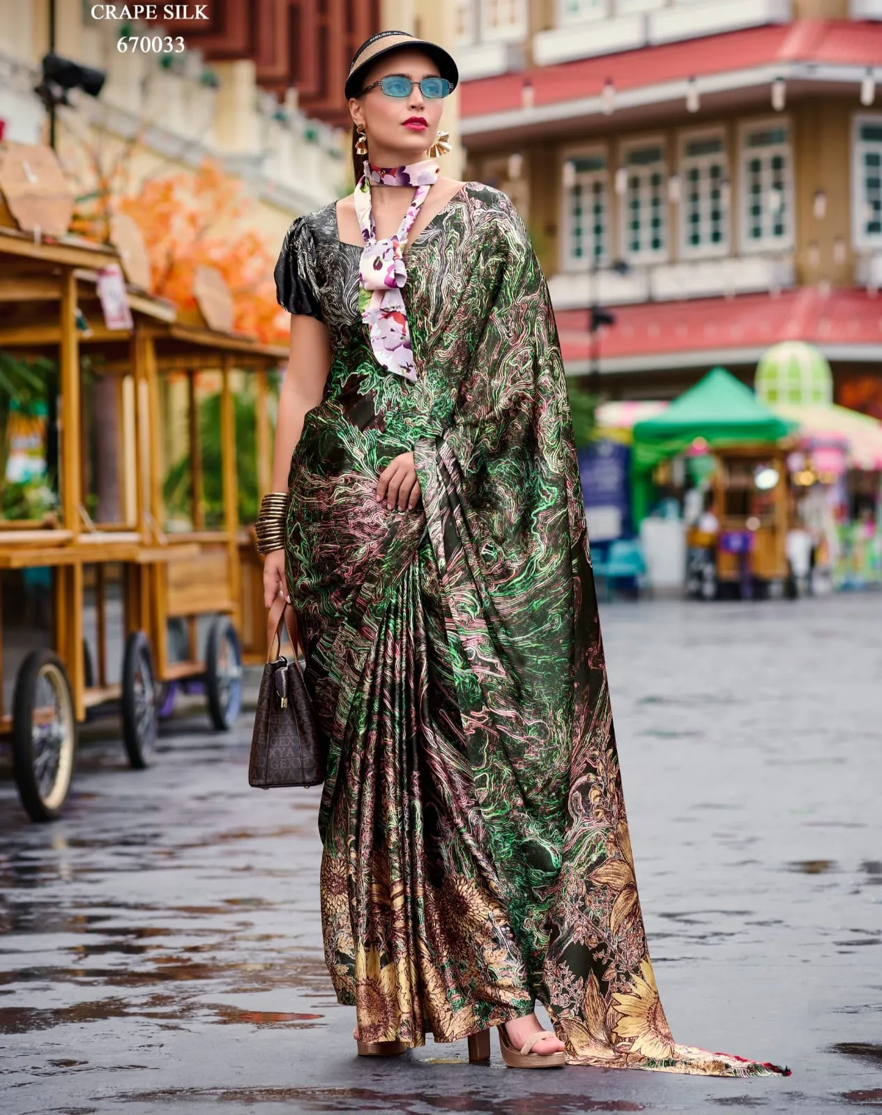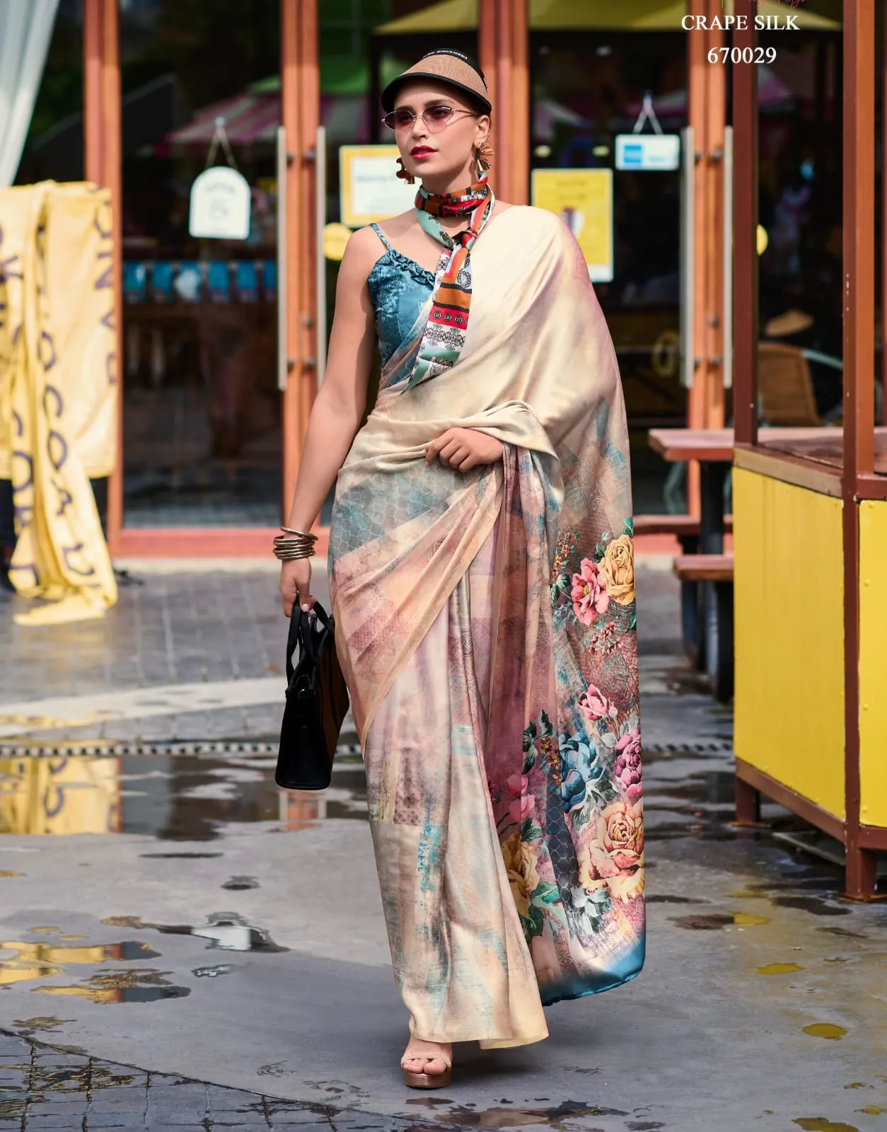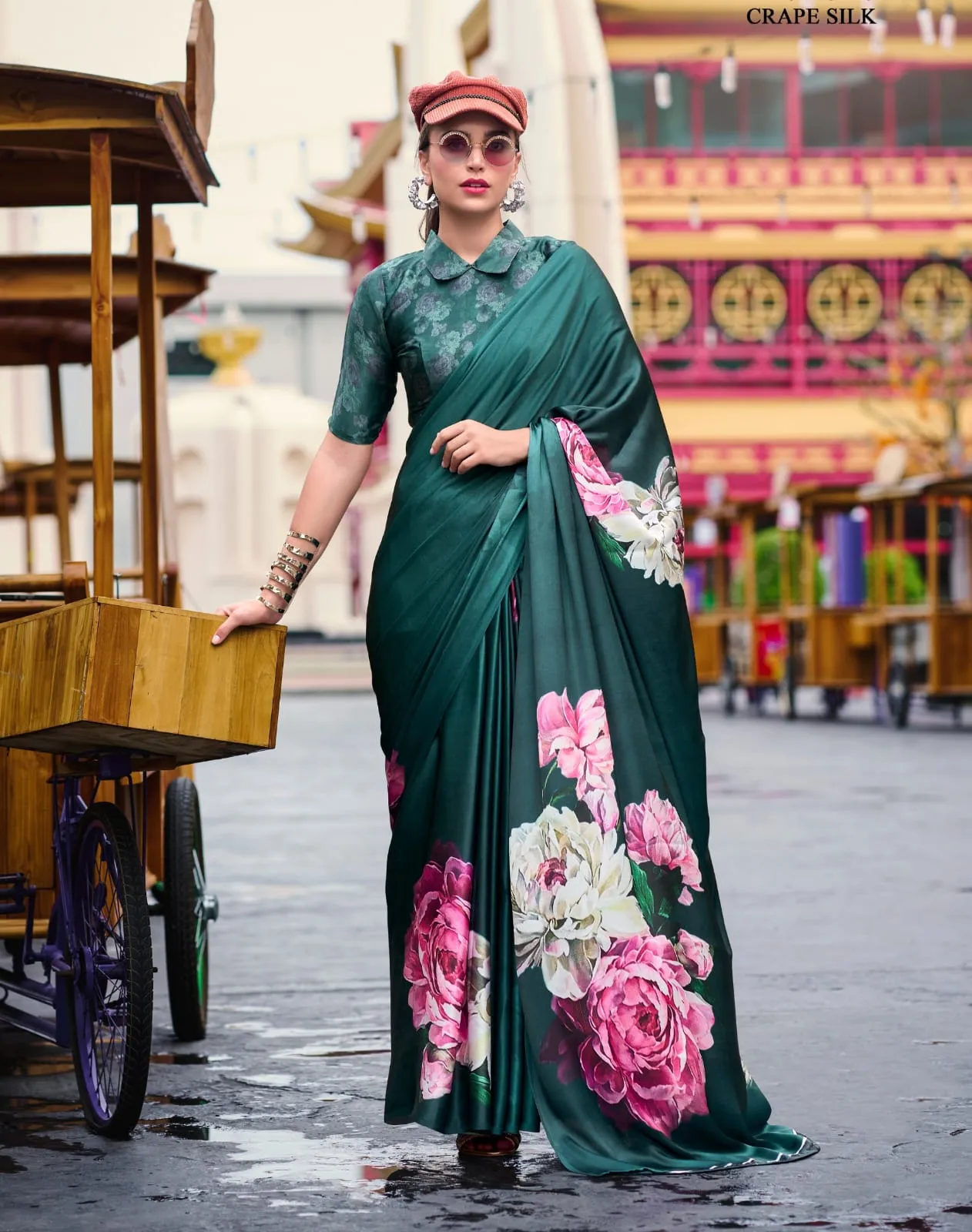 Catalog Name: Partywear Digital Printed Satin Crepe Saree